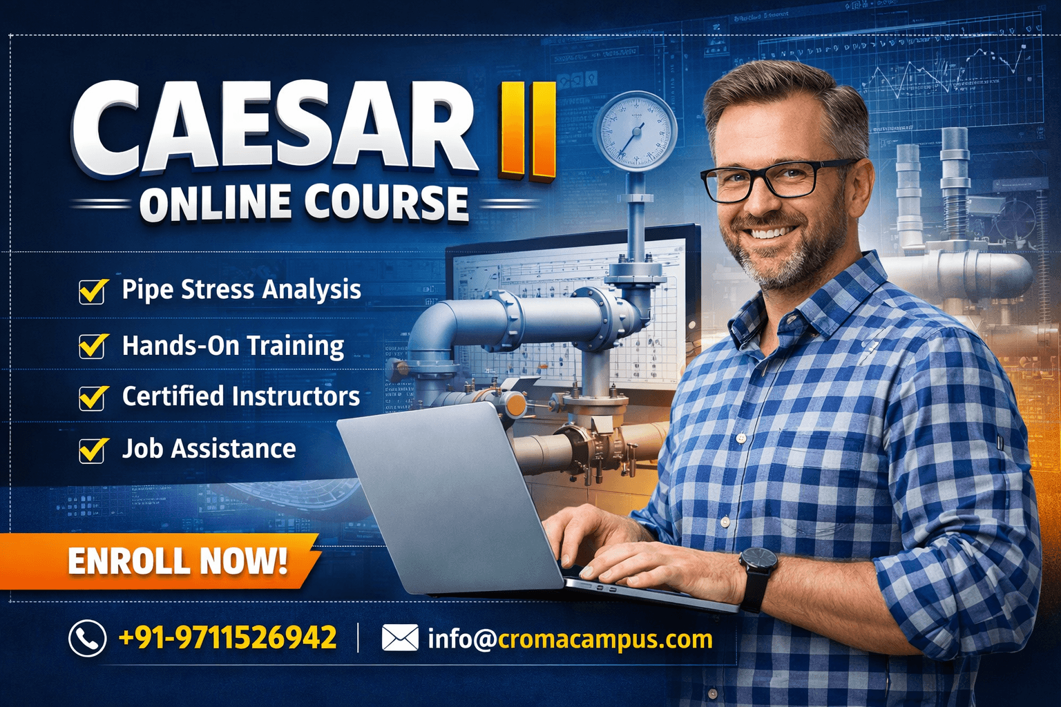 In Caesar ii Certification, learners perform temperature-based checks. They see how the pipe behaves under heat and adjust thickness if needed.